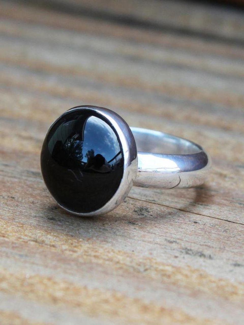 Home All Products Black Obsidian Ring (Real Silver)