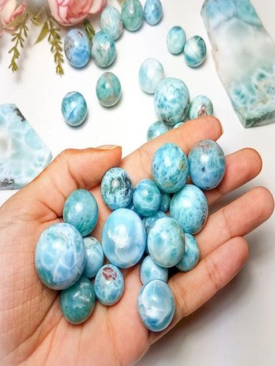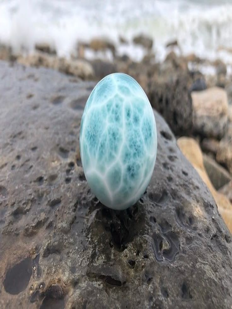 Sky-blue stone with white patterns, symbolizing peace, healing, and divine femininity.