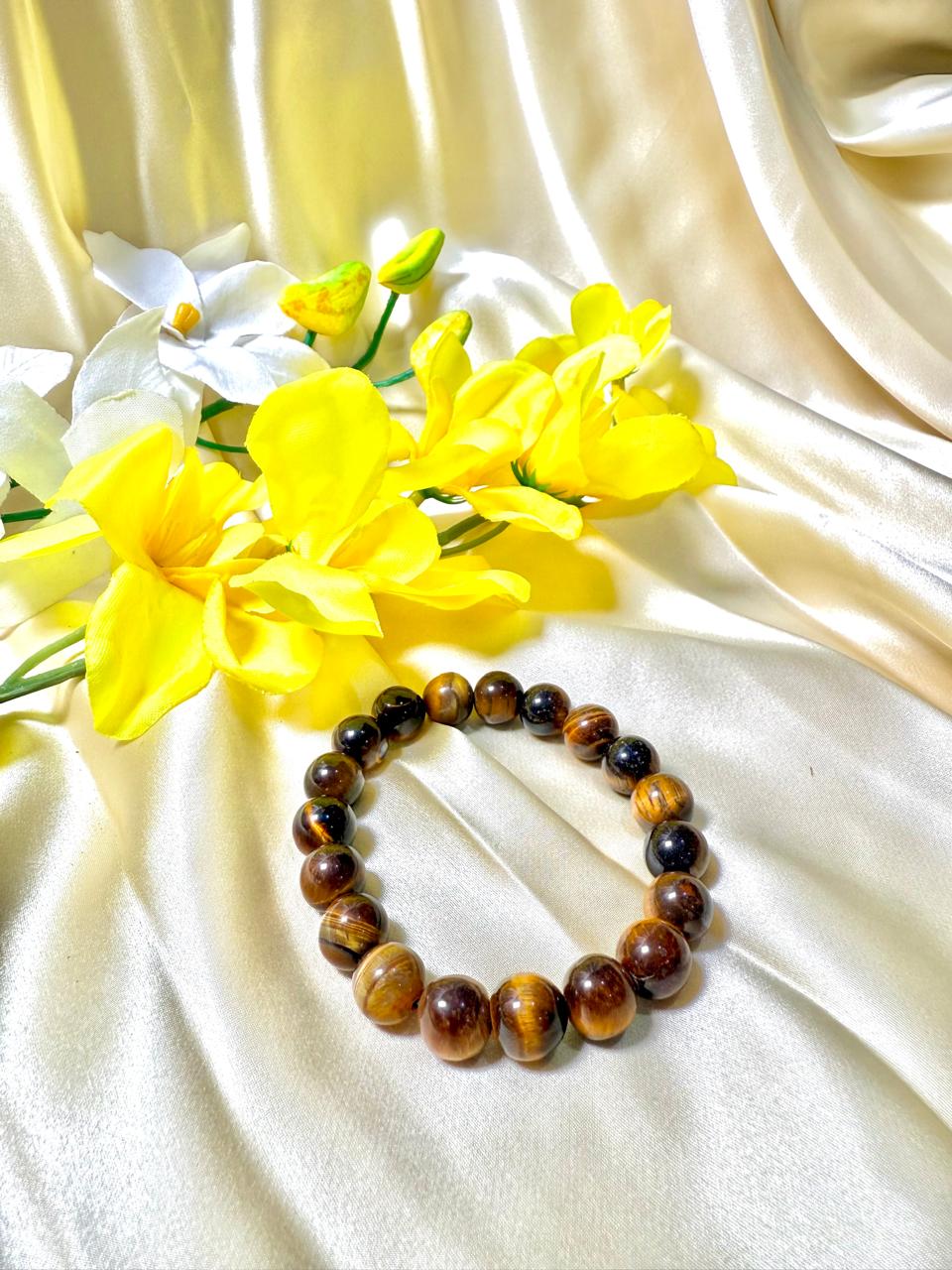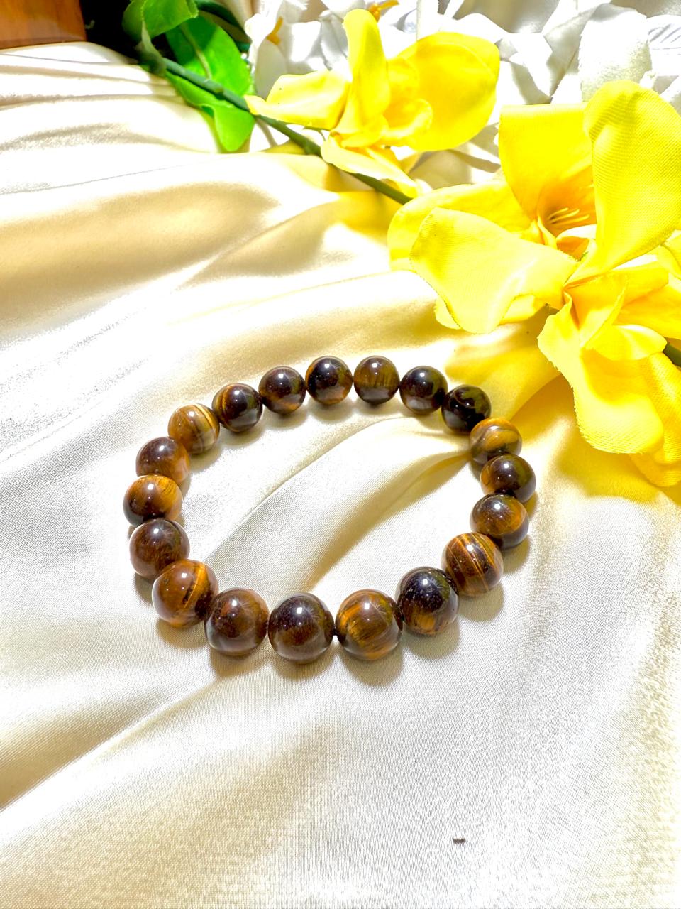 Golden to brown hues with chatoyant bands, radiating protective and grounding vibrations.